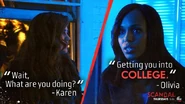 Olivia is in the middle of trying to have a normal dinner conversation with Jake when she gets a call. She meets up with Quinn at a raucous party. They find a young girl vomiting in a back bedroom. Olivia orders Quinn to call an encrypted number on her phone. When Cyrus Beene answers, she’s to tell him that they have, Karen, the president’s daughter.