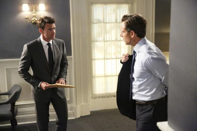 Rowan is disappointed that Secret Service man/B613 bad boy Tom hasn’t yet killed Jake. It’s not an easy ask. After all, the guy knows how he works. That’s probably why Jake is able to sidle up to Tom moments after Rowan leaves. He says they are both on Command’s hit list. After all, they are the only two people who know who ordered the president’s son to be killed. Jake later strong-arms David into giving him back the B613 files.